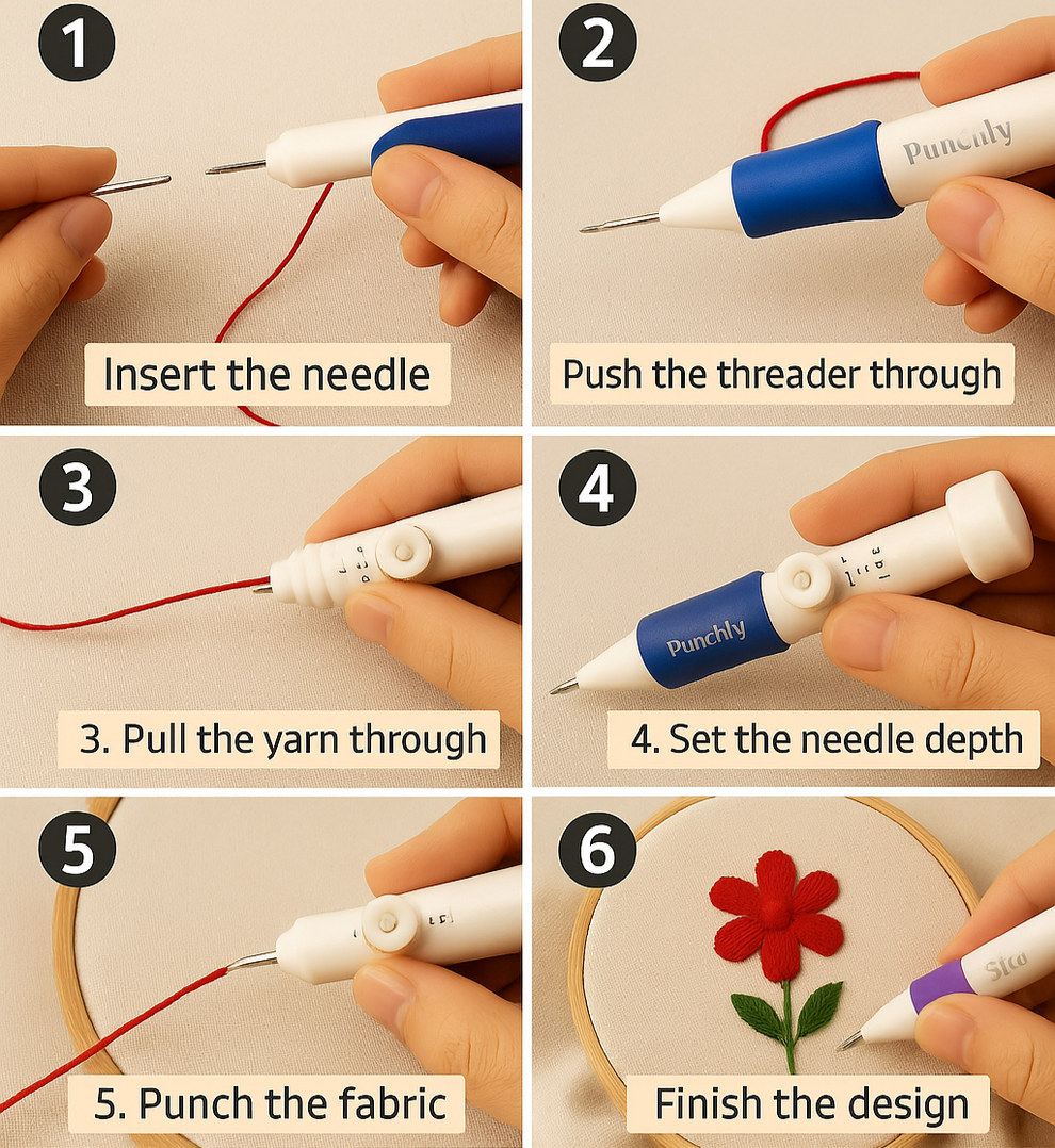 Unlike regular embroidery kits, Punchly™ is designed to give you studio-quality results at home. With its comfortable grip and adjustable needle system, you’ll enjoy a smooth, frustration-free embroidery experience — whether you’re a complete beginner or an experienced crafter.