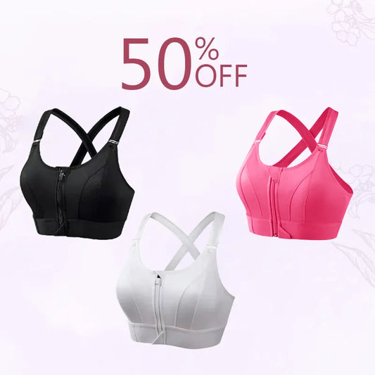 🔥(PACK OF 3)🏆Wireless Supportive Adjustable Zip Front Sports Bra